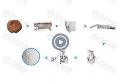 The working process of the konjac chips processing line: Konjac cleaning and peeling-slicing-drying-grinding-packaging.