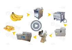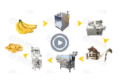 Major equipment includes: plantain Slicing Machine, Elevating Conveyor, Sugar Soaking Machine, Air Drying Machine, Continuous Frying Machine, Vibration Deoiling Machine, Pre-cooling Machine, Elevating Conveyor, Seasoning Machine, Automatic Weighing Packing Machine.
