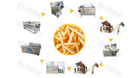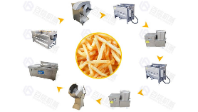 Through high pressure waterflow and water bubbles to impact and scrub the fries to wash off the starch |