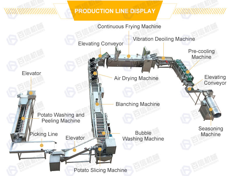 Through high pressure wind blowing for pre-cooling and deoiling the potato slices |