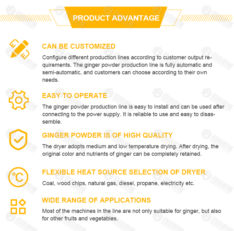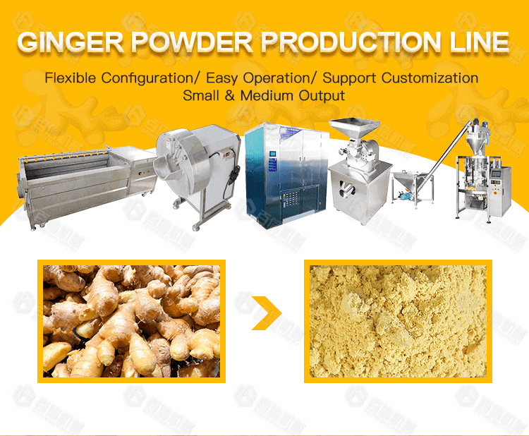 | Components | Ginger cleaning and peeling machine / Ginger slicer / Ginger dryer / Ginger grinder / Ginger powder packaging machine etc. |