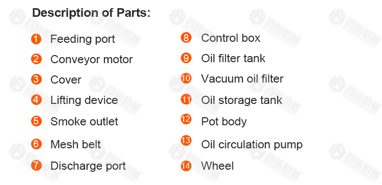 Oil circulation system to continuously filter oil residue and extend the service life of cooking. |