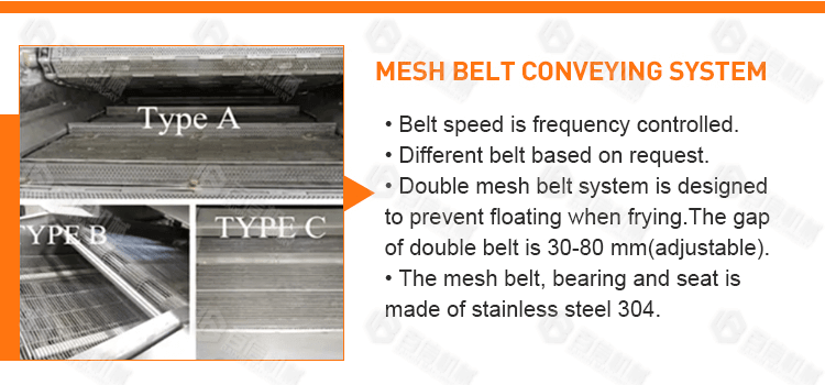 Double belt design to prevent floating, ensure complete and perfect frying effect. |
